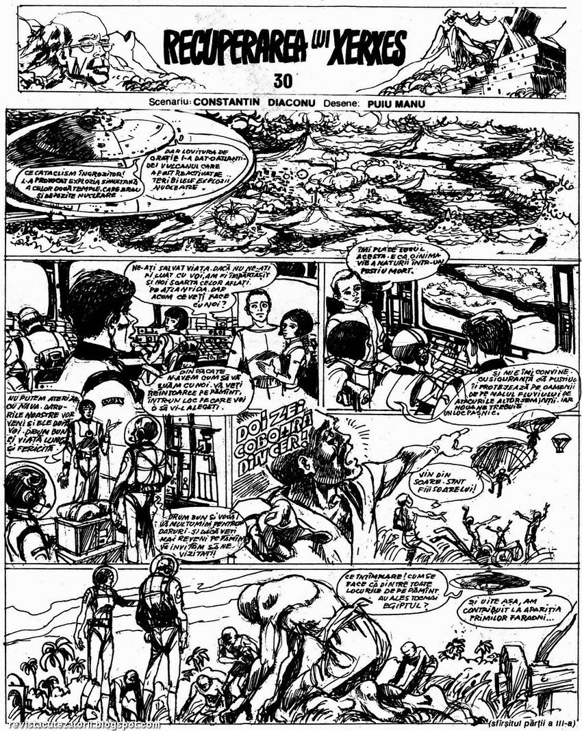 Din BD-ul "Trei luni de vacanta in trecut" am gasit doar doua episoade din partea a III-a, intitulata "Recuperarea lui Xerxes", cu scenariul de Constantin Diaconu si desene de Puiu Manu, publicata in "Universul Copiilor" in 1990.